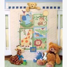 Stamped cross stitch combines printed background shading with the stitching offers a more contemporary look for some of the designs. Contains presorted cotton thread, design printed in wash-away ink on prefinished muslin/polyester quilt, and needle. Finished Size: 34-inches-by-43-inches